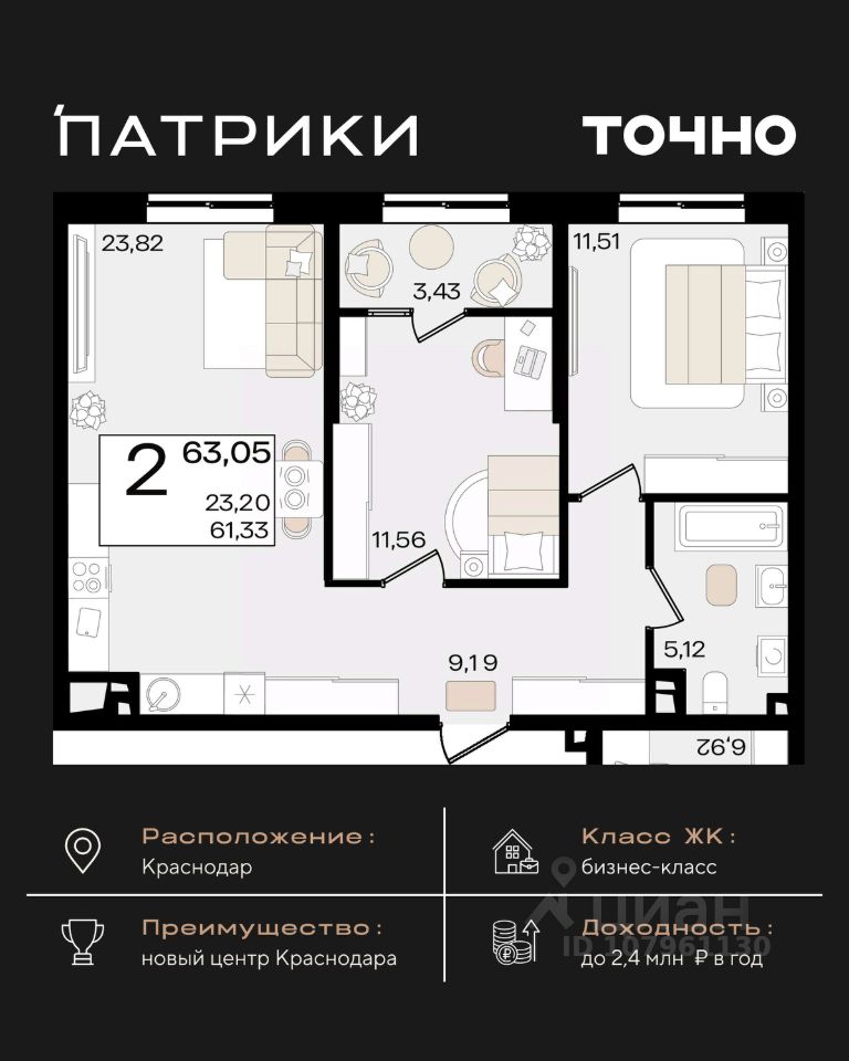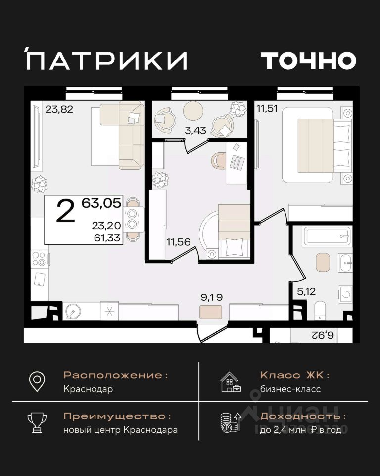 продам 2-к, Сормовская, 1/3 лит.15 493 000 ₽