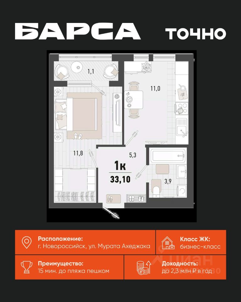 продам 1-к, Барса ЖК, 1в12 420 775 ₽