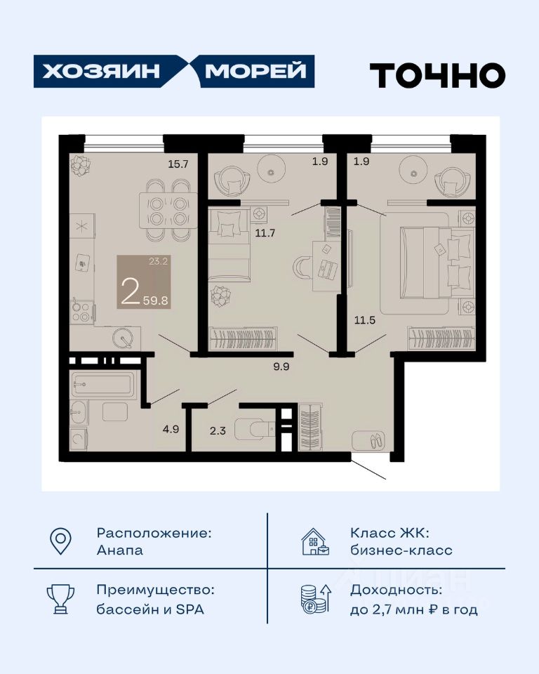 продам 2-к, Супсех14 801 000 ₽