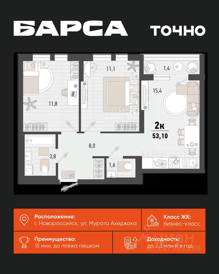 продам 2-к, Новороссийск16 074 166 ₽