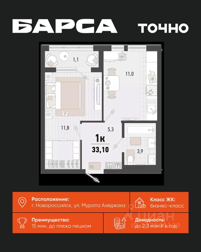 продам 1-к, Новороссийск8 510 208 ₽