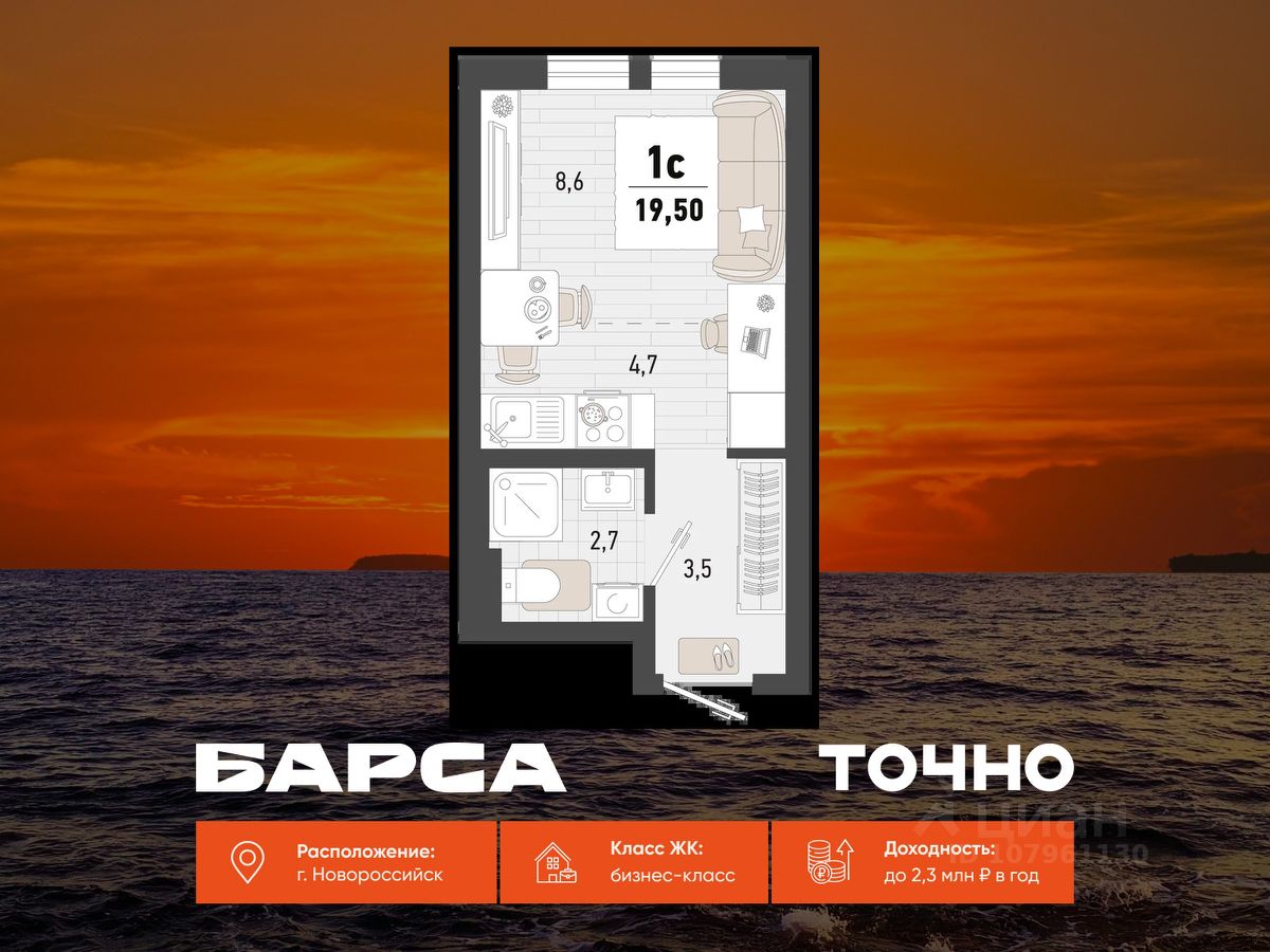 продам 1-к, Новороссийск8 871 000 ₽