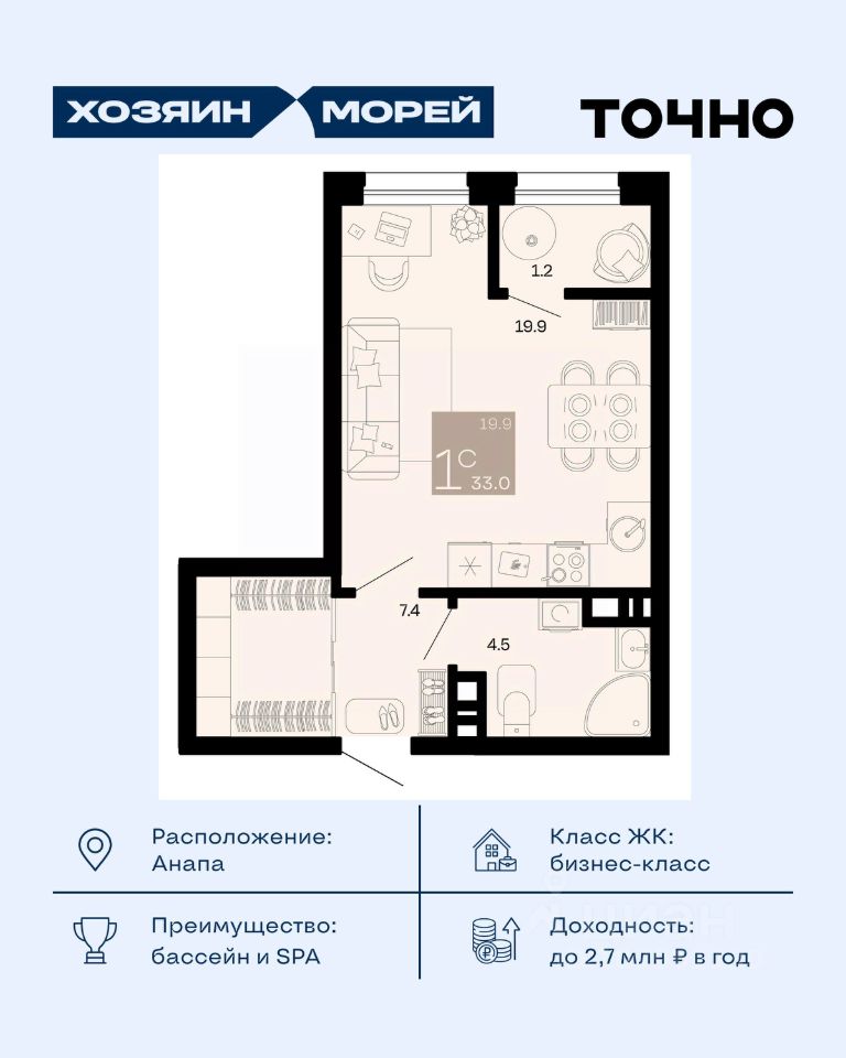 продам 1-к, Супсех8 333 000 ₽