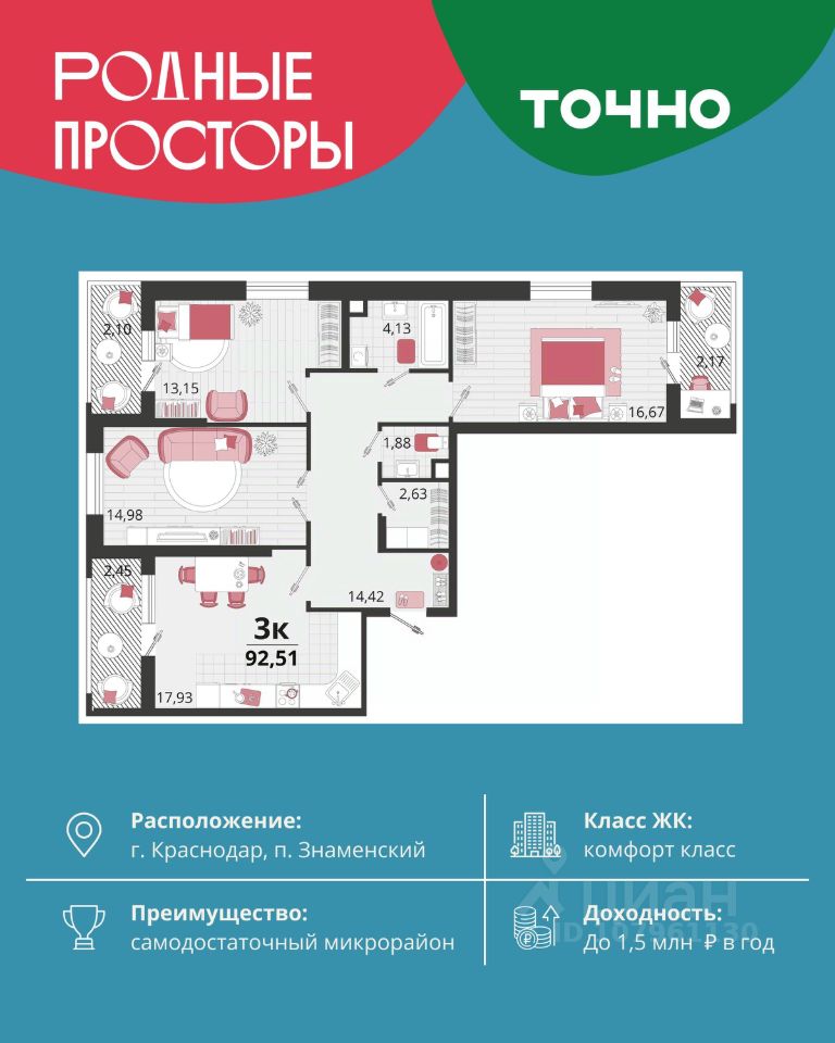 Общая площадь92,51 м2