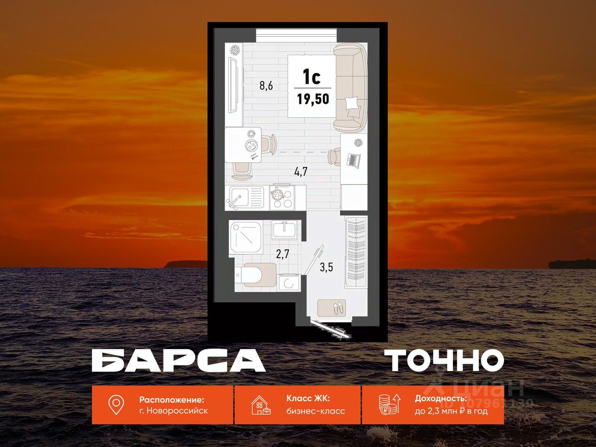 продам 1-к, Новороссийск8 768 000 ₽