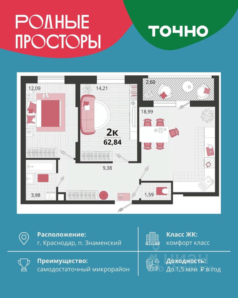 Общая площадь62,84 м2