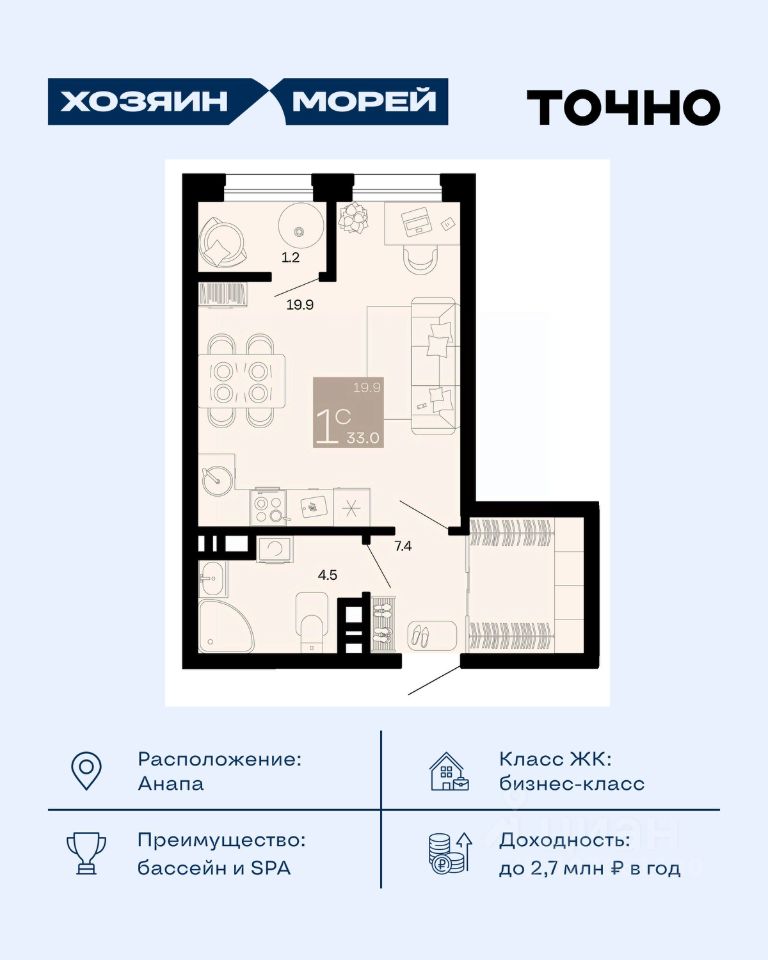 продам 1-к, Супсех10 923 000 ₽