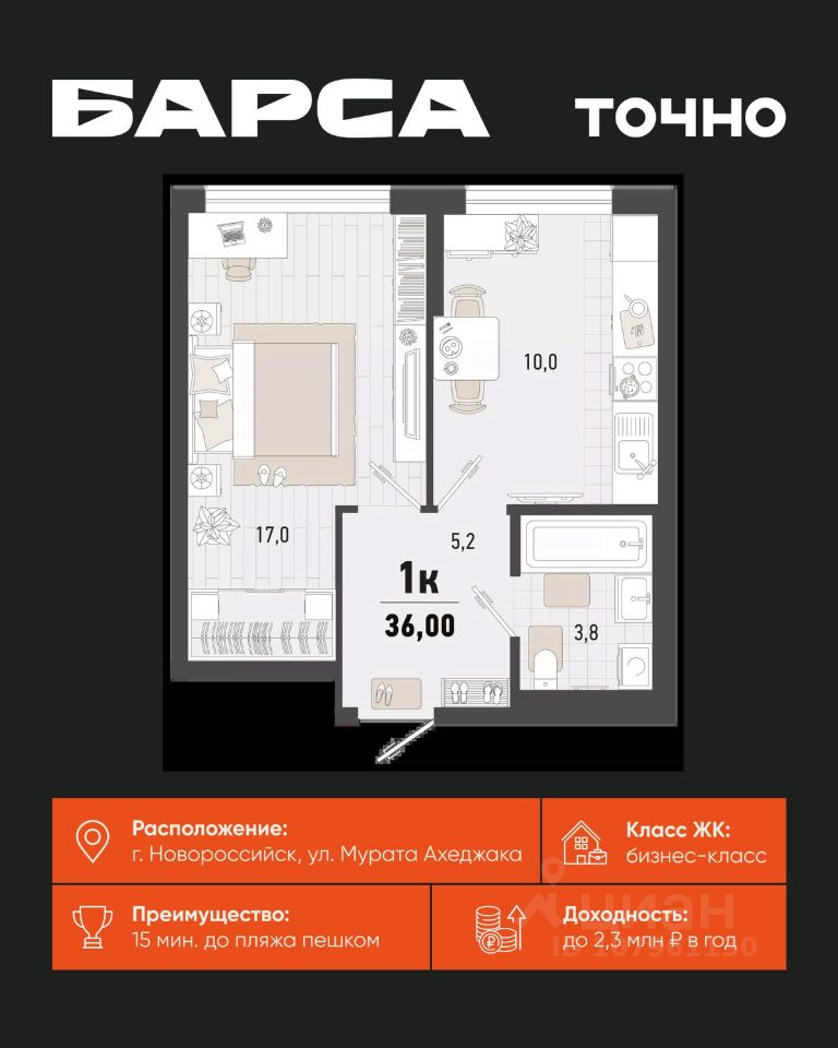 продам 1-к, Новороссийск10 262 340 ₽