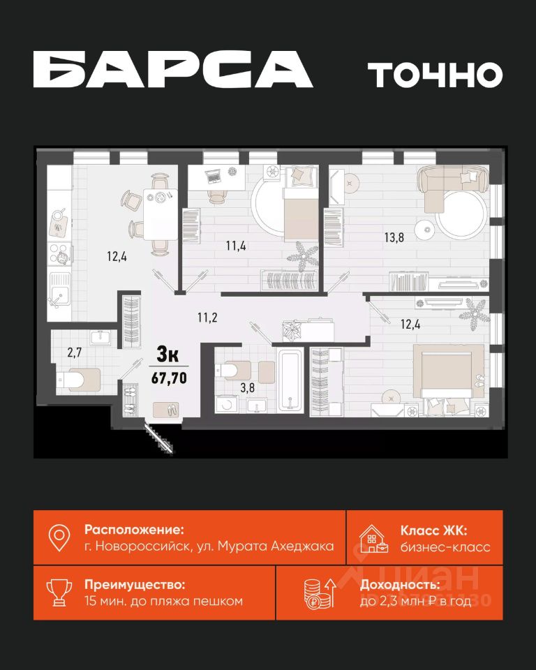 продам 3-к, Новороссийск13 719 405 ₽