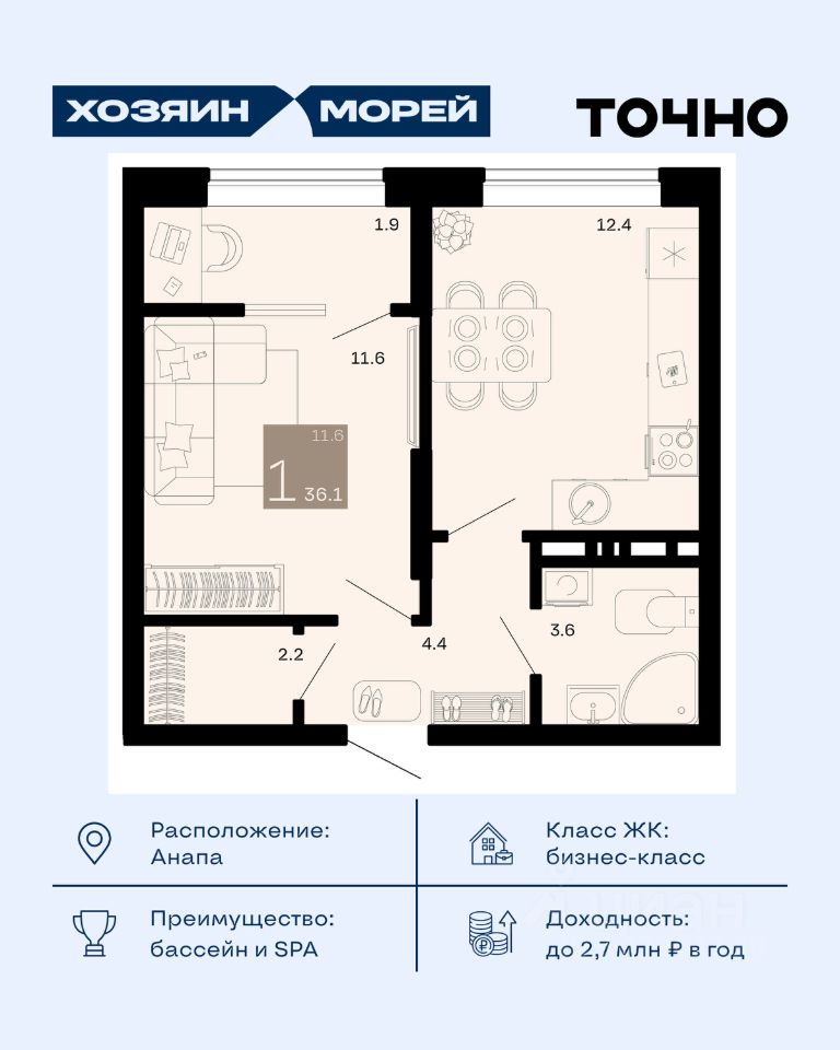 продам 1-к, Супсех10 830 000 ₽