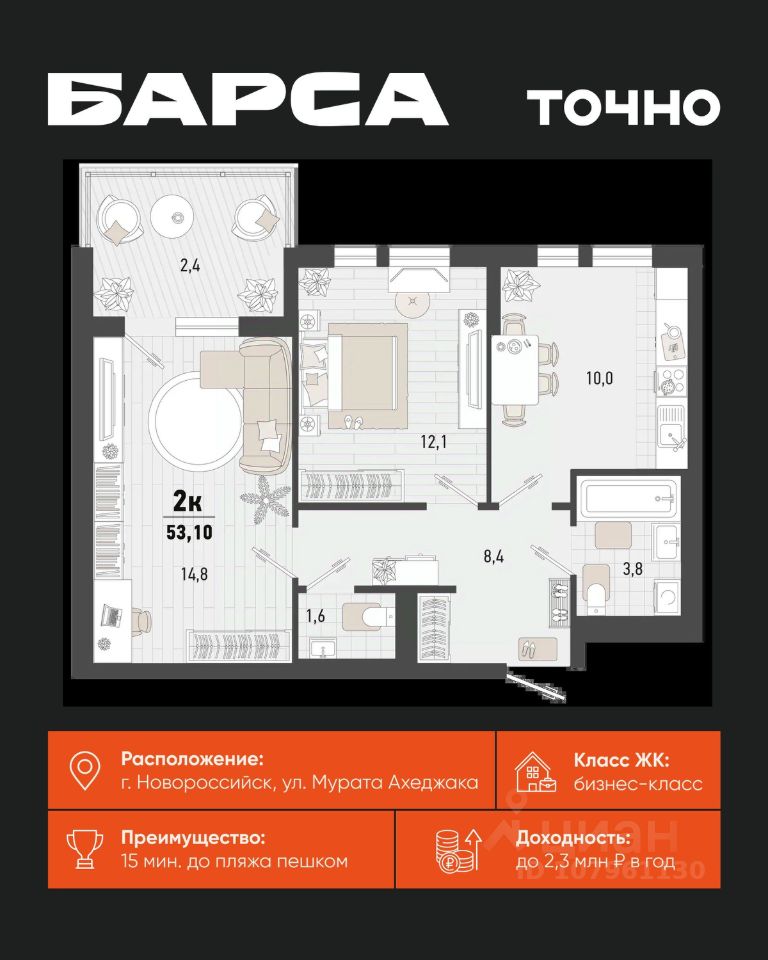 продам 2-к, Новороссийск11 504 115 ₽