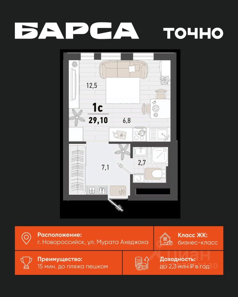 продам 1-к, Новороссийск10 589 490 ₽