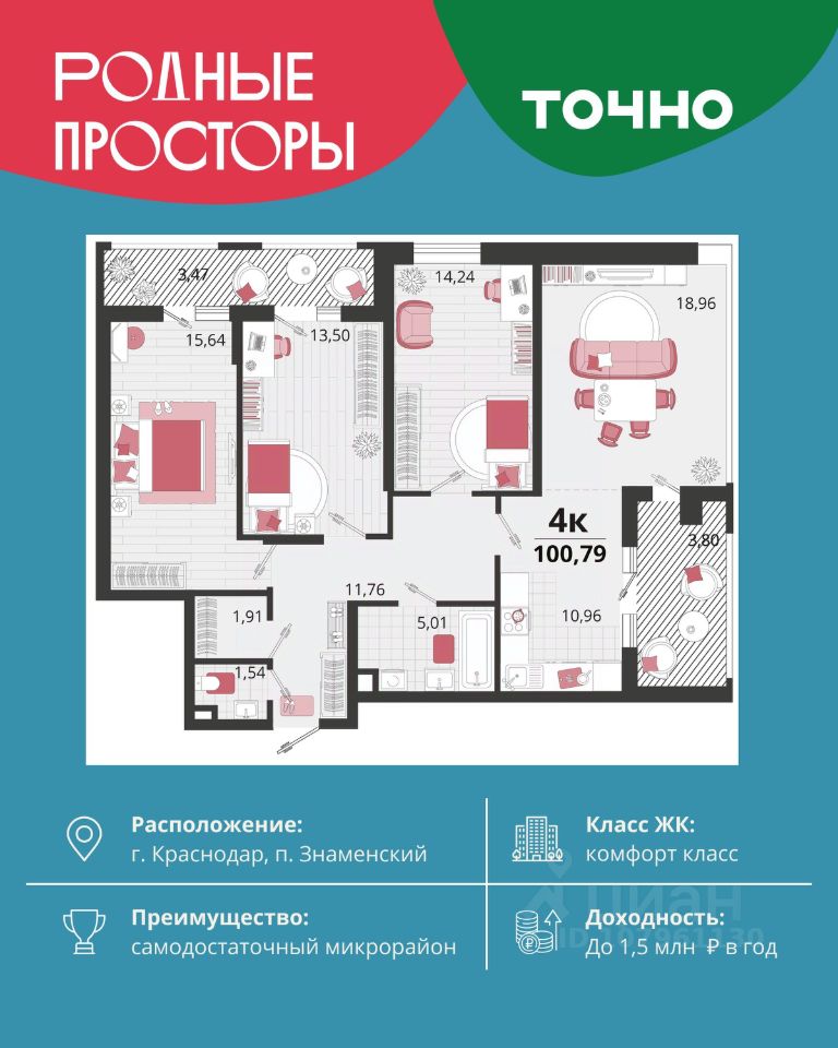 продам 4-к квартира15 118 500 ₽