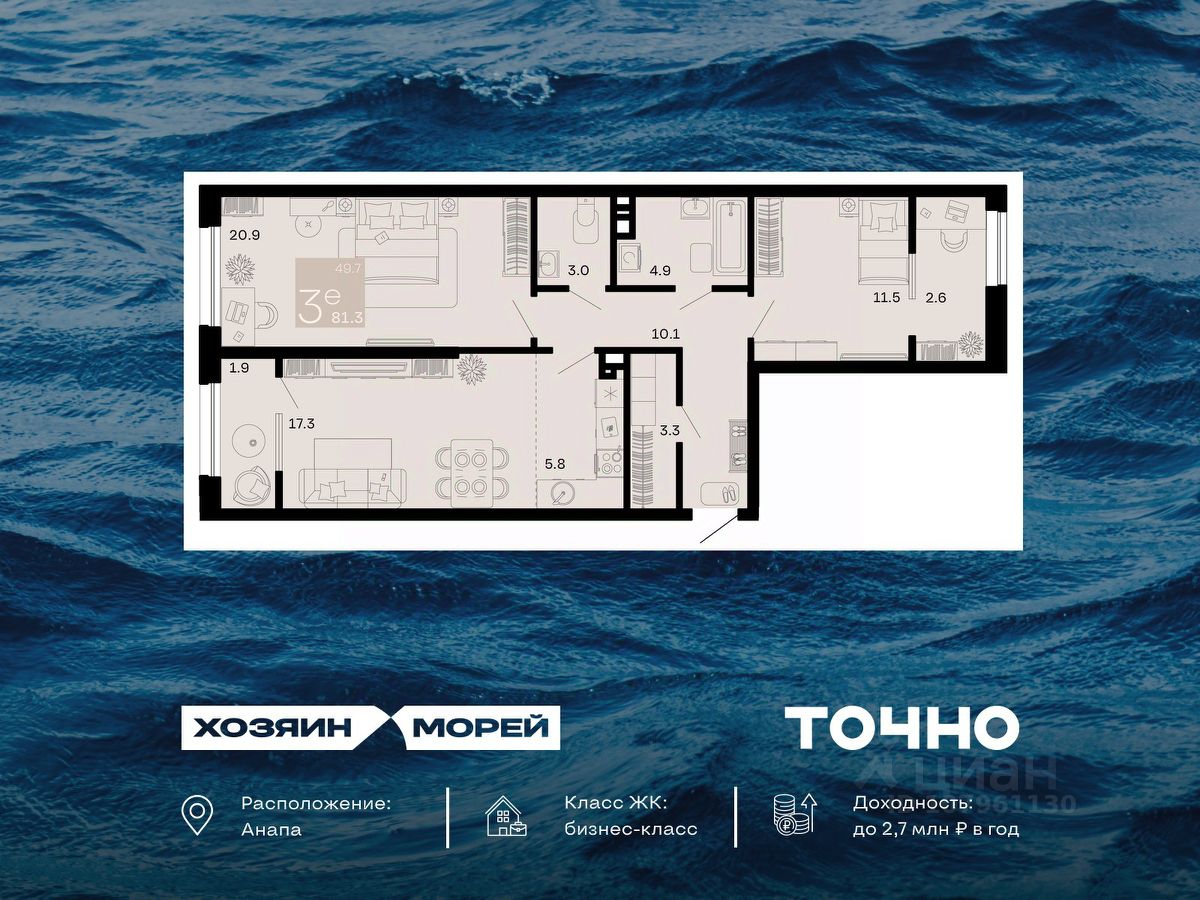 продам 3-к, Супсех19 309 000 ₽