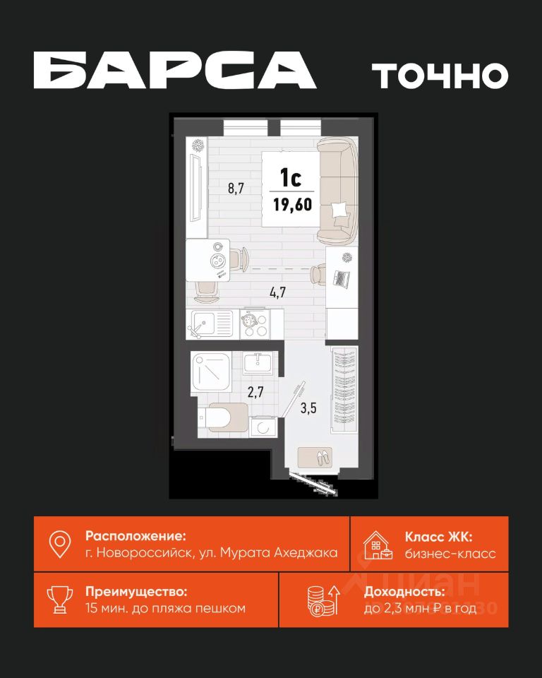 продам 1-к, Новороссийск7 502 880 ₽