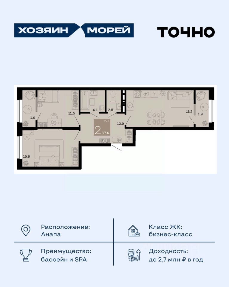 продам 2-к, Супсех15 198 700 ₽