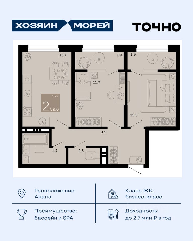 продам 2-к, Супсех19 548 800 ₽
