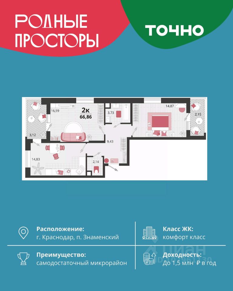 Общая площадь66,86 м2