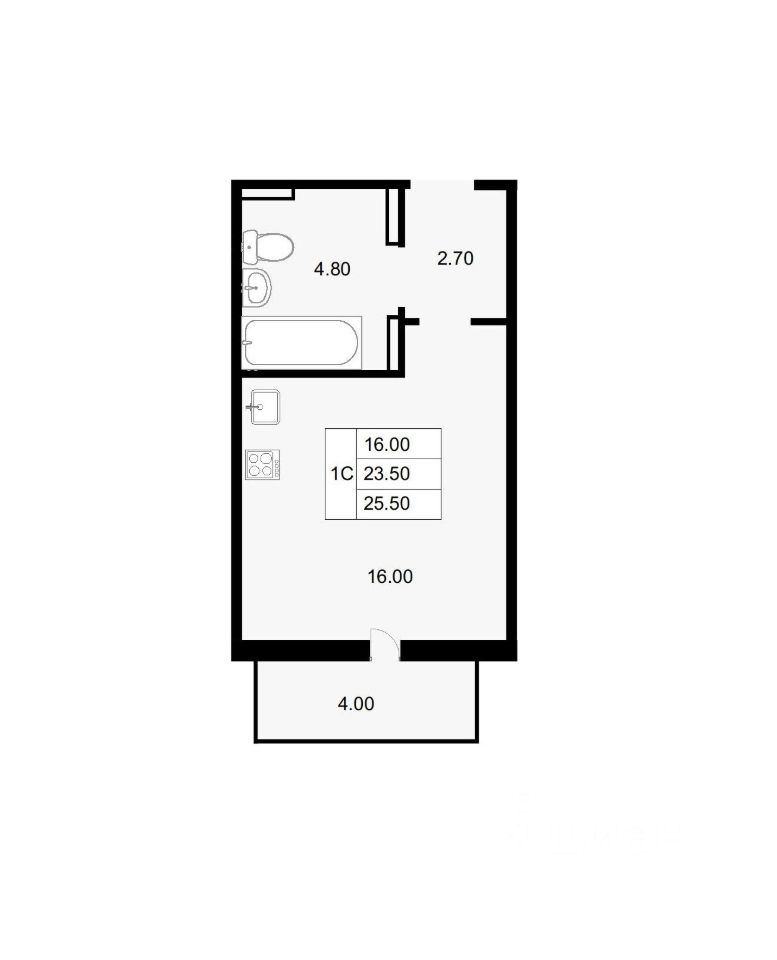 Общая площадь25,5 м2