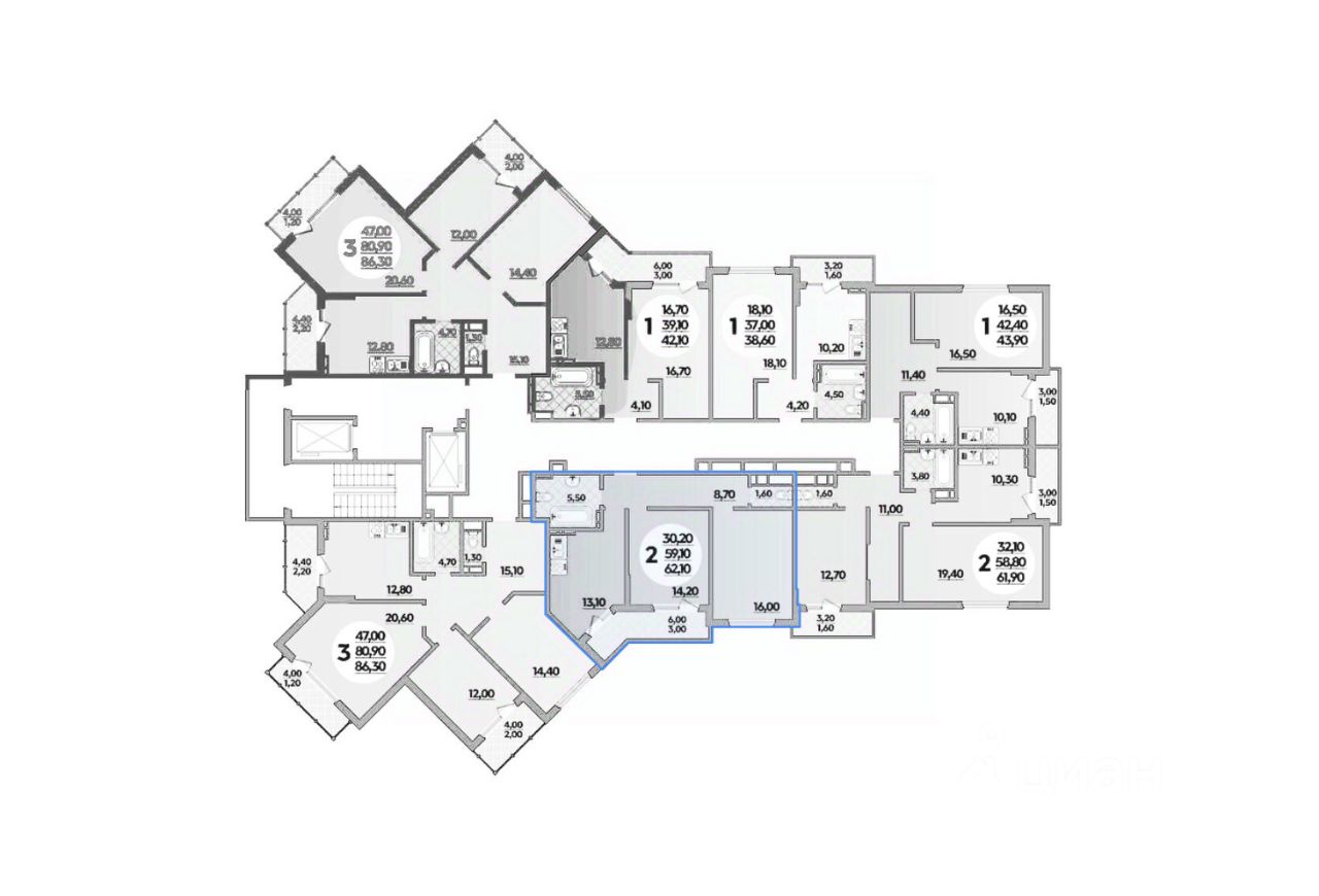 Общая площадь62 м2