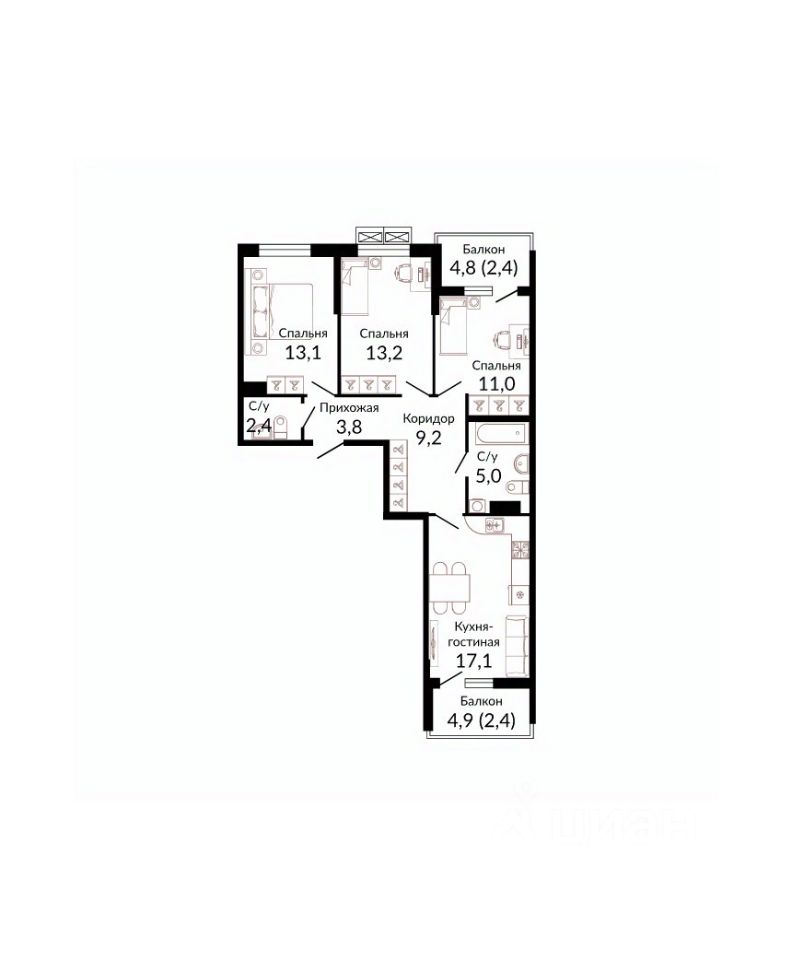 Общая площадь81,9 м2