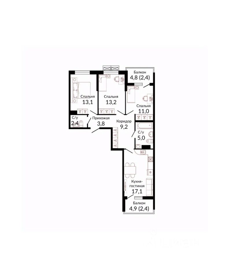 Кухня17,1 м2