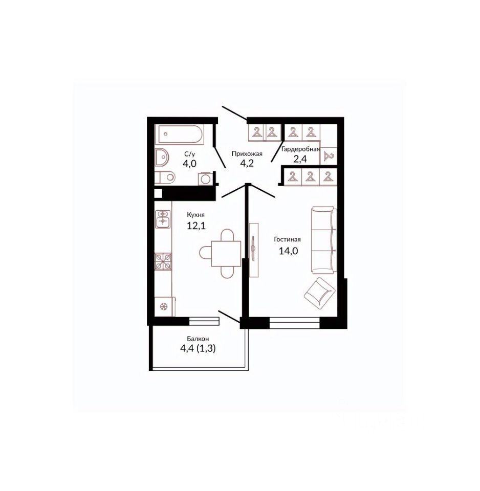 Кухня12,1 м2