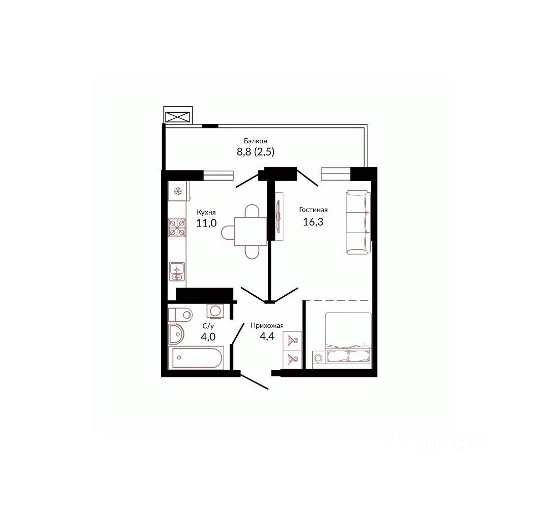 Общая площадь39,5 м2