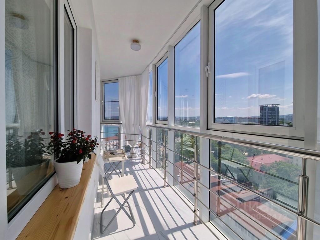 Подробный видео обзор смотрите в объявлении. Квартира с видом на Центральный пляж, весь город, горы и Высокий берег. Фото реальные. Остается все, что на фотографиях. ТОПовая локация. 12 этаж. Лифт. Полноценная 3х комнатная квартира общей площадью 115,5 кв.м. Полностью укомплектована мебелью, бытовой техникой. Много интерьерных решений в квартире, начиная от мелочей и кончая интерьерными люстрами Вы просто с хорошим настроением заходите в новую квартиру и наслаждаетесь пребыванием в ней. Комнаты все изолированные. Раздельные с/у. Изюминка этой квартиры большая остекленная терраса с фактическим видом на 180 градусов. Коммуникации все централизованные. Счетчики. За счет локации, пешая доступность ко всей курортной инфраструктуре: Сквер Боевой славы прямо у дома. До прогулочной набережной 5 минут ходьбы. Кафе и рестораны, Школа и сад, Санатории и Пансионаты с множеством лечебных услуг. Различные бассейны с пресной и соленой водой. Вообщем есть все, что необходимо для жизни так и для отдыха.