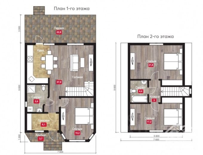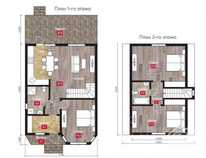 Планировка - три спальни, кухня-гостиная с выходом на террасу 22.8 кв.м.