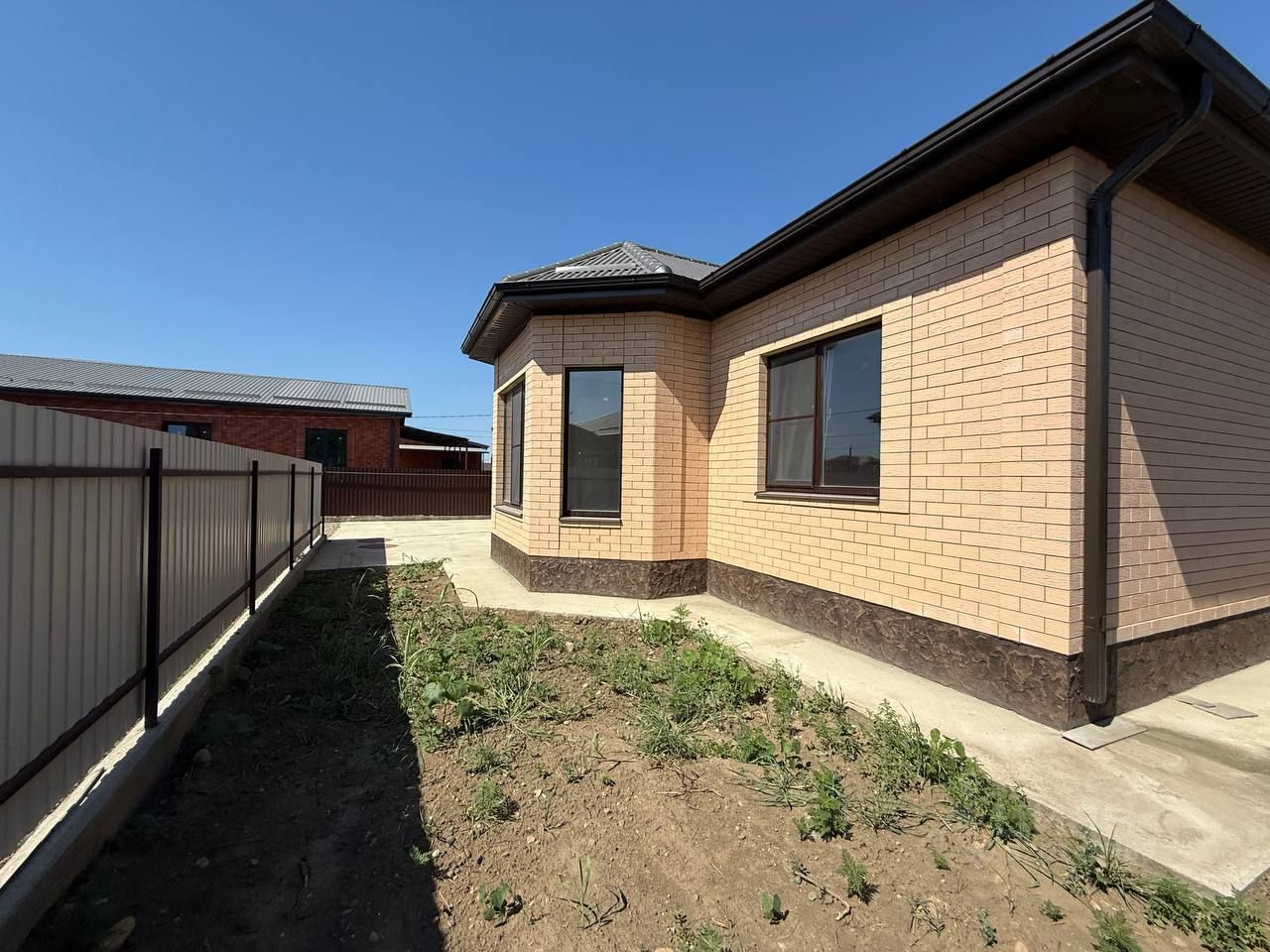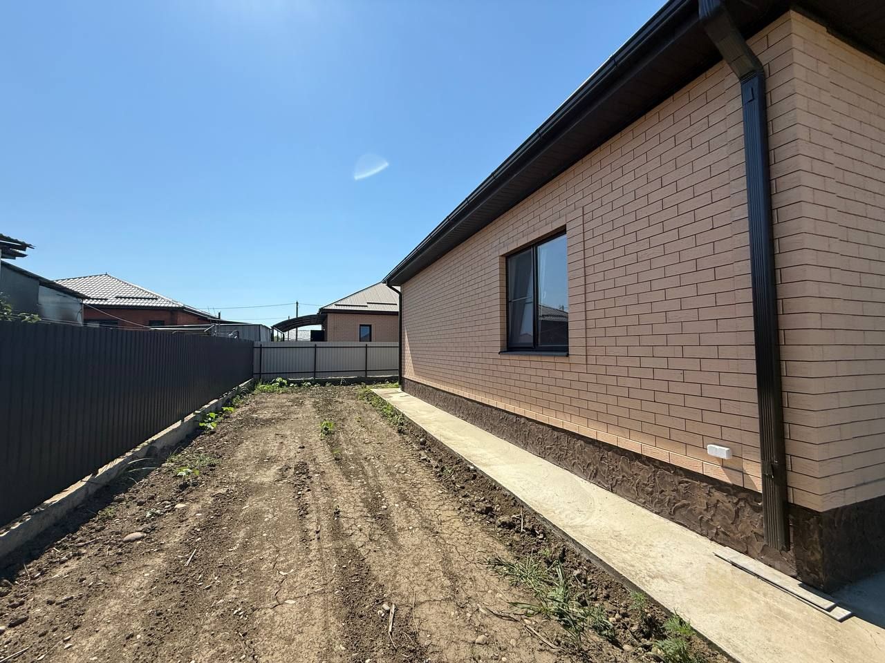 Продаётся новый дом с отделкой под ключ, 3 спальни, кухня-гостиная, с/у, котельная. Навес. Двор бетонирован. Земельный участок 5.5 соток. Забор.