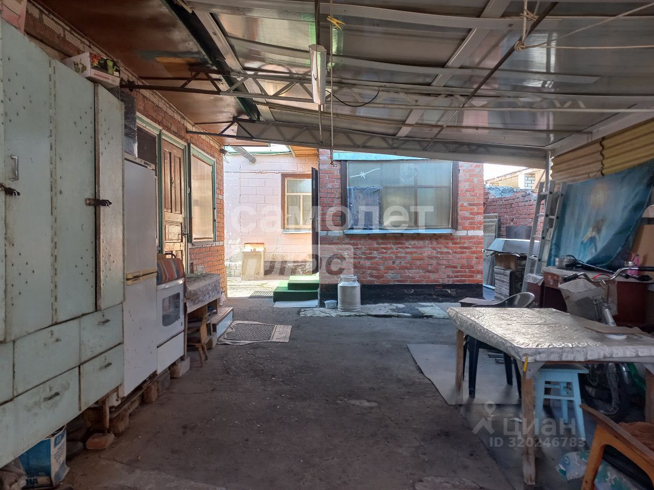 Стены кирпич, оштукатуренный и саман, крыша - шифер, окна деревянные, по фасадной части с ролл-ставнями.