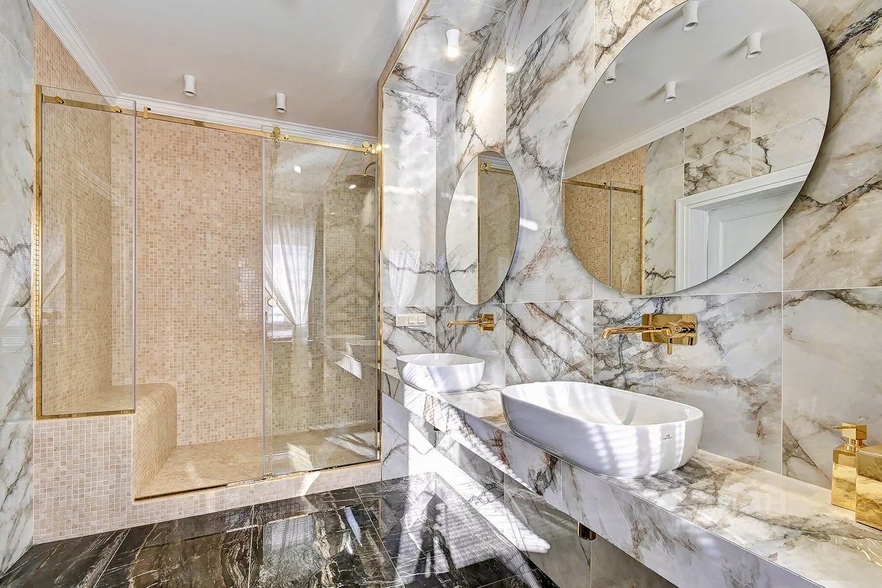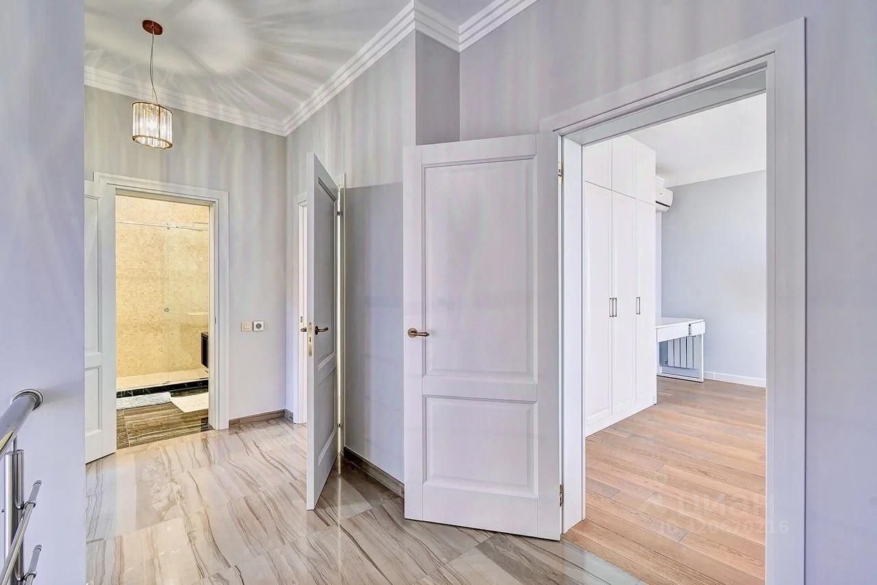 -1этаж: просторный холл, кухонная зона, с/у, прачечная + котельная, -2этаж: 2 спальни с с/узлами и террасами (одна с гардеробной) -3этаж: 3 спальни с террасами, 1 с/у с террасой. В каждой спальне двуспальная кровать 220х160, 4 просторных санузла с огромными душевыми, в холле мягкие диваны. Все спальни с террасами, светлые, просторные с панорамными окнами.