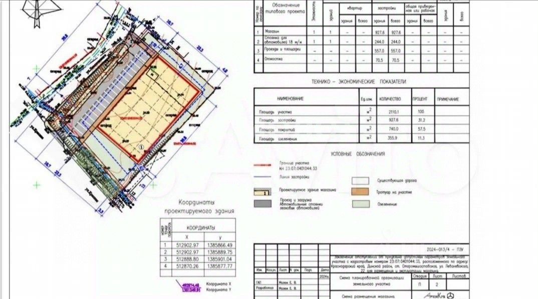Арт. 113313080 Земельный участок под строительство магазина, получено разрешение на строительство, топосъемка, град план, Проект на 1007 кв.м., Обустройство ливневого водоотведения, фасад 37*56. Все коммуникации