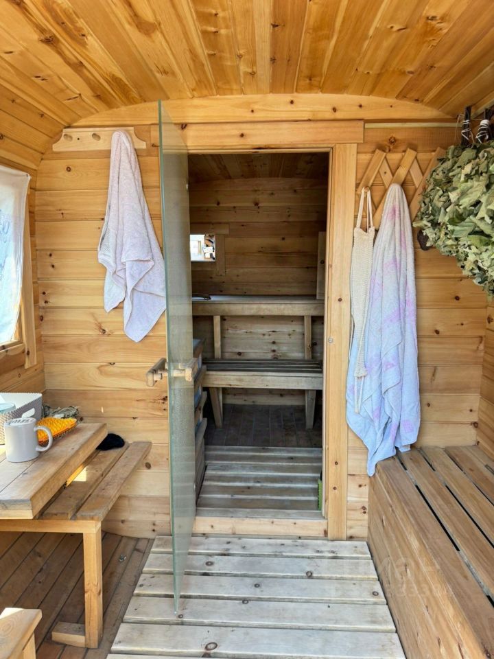 Двор очень ухоженный, все для жизни в удовольствие на юге есть: бассейн, баня из кедра, во дворе плодовые деревья, ежевика, виноград