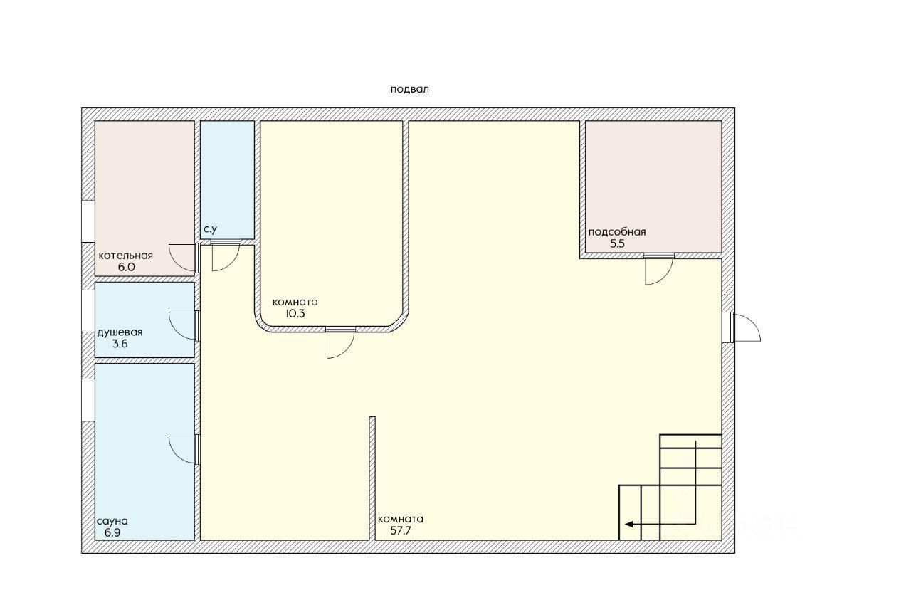 В цокольном этаже с полноценной высотой потолка размещаются сауна, бассейн, тренажерный зал, котельная и подсобные помещения.