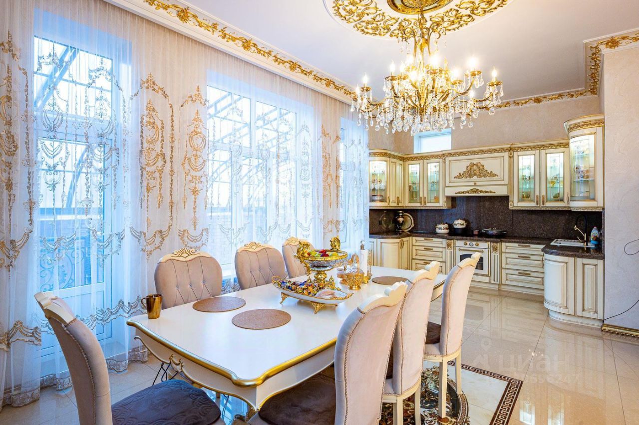 В 2018 году сделан ремонт и все убранство дома оформлено в соответствии со всеми правилами стиля ампир: бронзовые люстры с хрусталем, золотые своды колон и арок, позолоченные кованные элементы лестничных маршей , эксклюзивная стилизованная мебель.