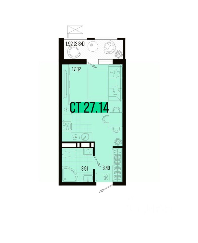 Общая площадь27,14 м2