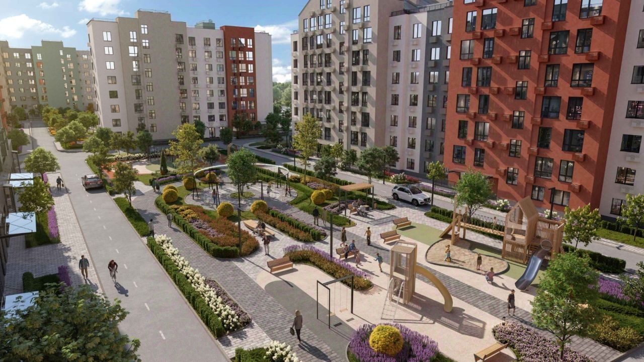 Территория комплекса благоустроена, организованы аллеи для прогулок, детские площадки и спортивные зоны. Для автовладельцев предусмотрена стоянка.
