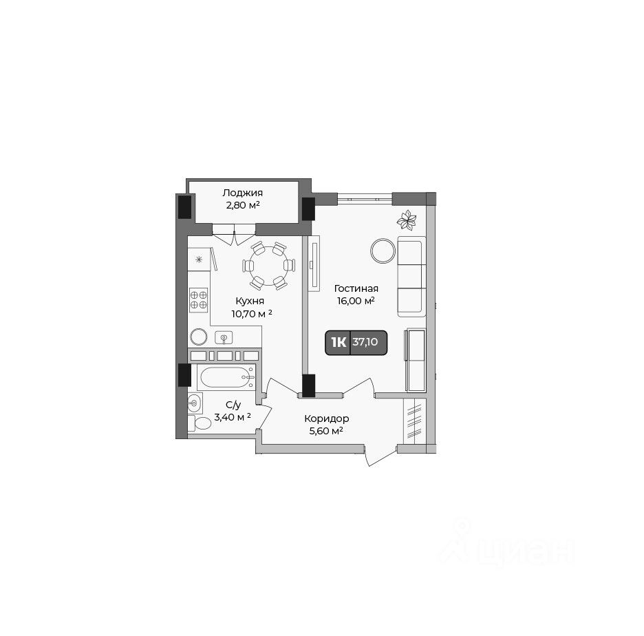 Общая площадь37,1 м2