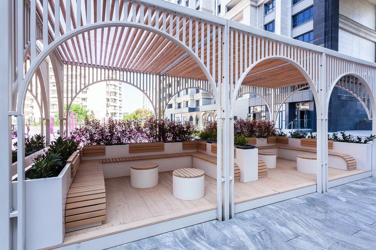 Комплекс предлагает продуманную инфраструктуру: на верхних этажах расположены рестораны, кафе и фитнес-центры с бассейнами, что позволяет наслаждаться жизнью без необходимости покидать дом. Входы в жилую и коммерческую зоны разделены, обеспечивая комфорт и приватность.