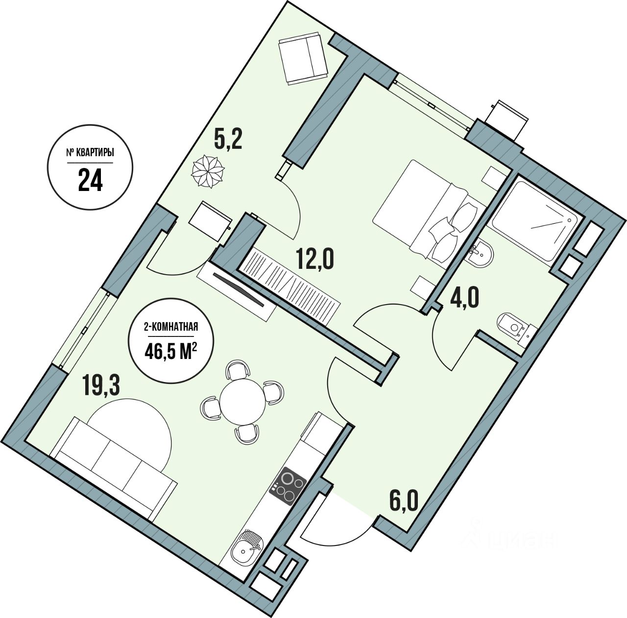 Общая площадь42,86 м2