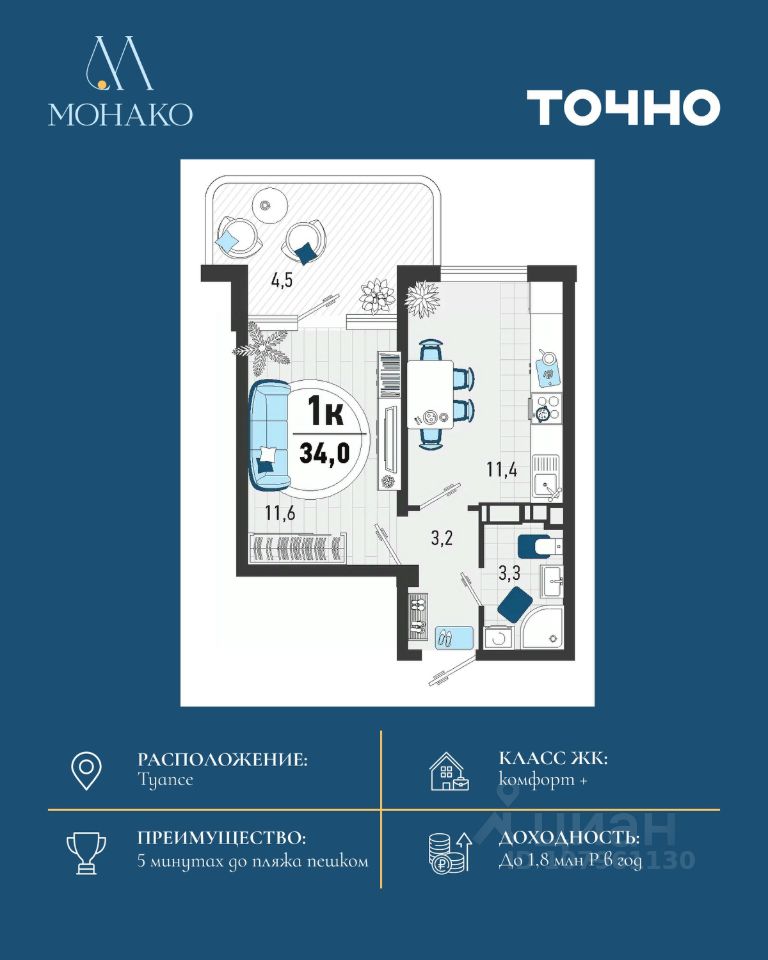 продам 1-к, Конечная, 48 950 000 ₽