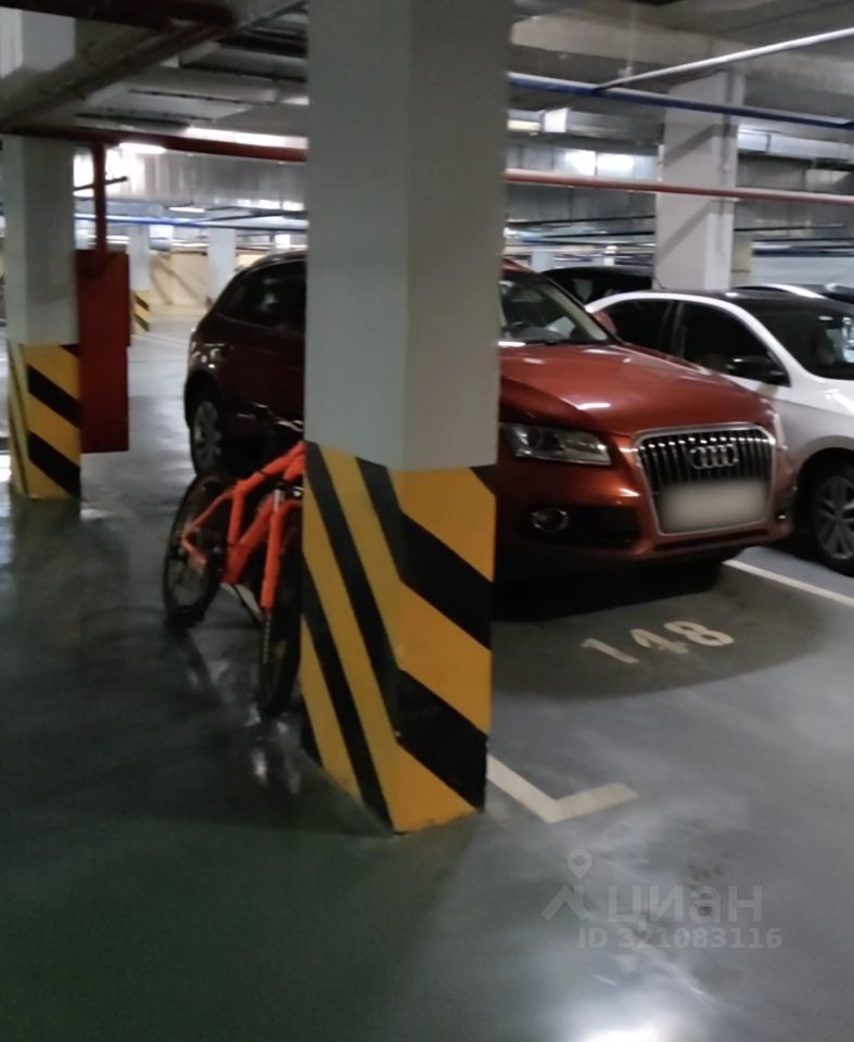 Комфортное место в подземном паркинге. Прямой доступ на лифте. Сухо. Есть место для хранения 2-3 велосипедов.