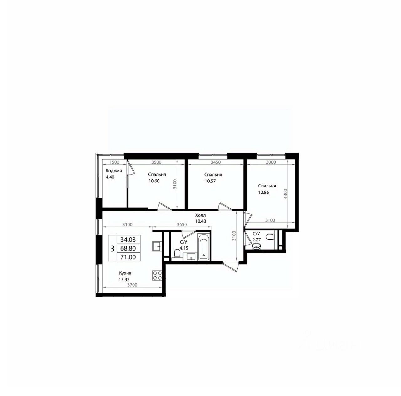 Общая площадь71 м2