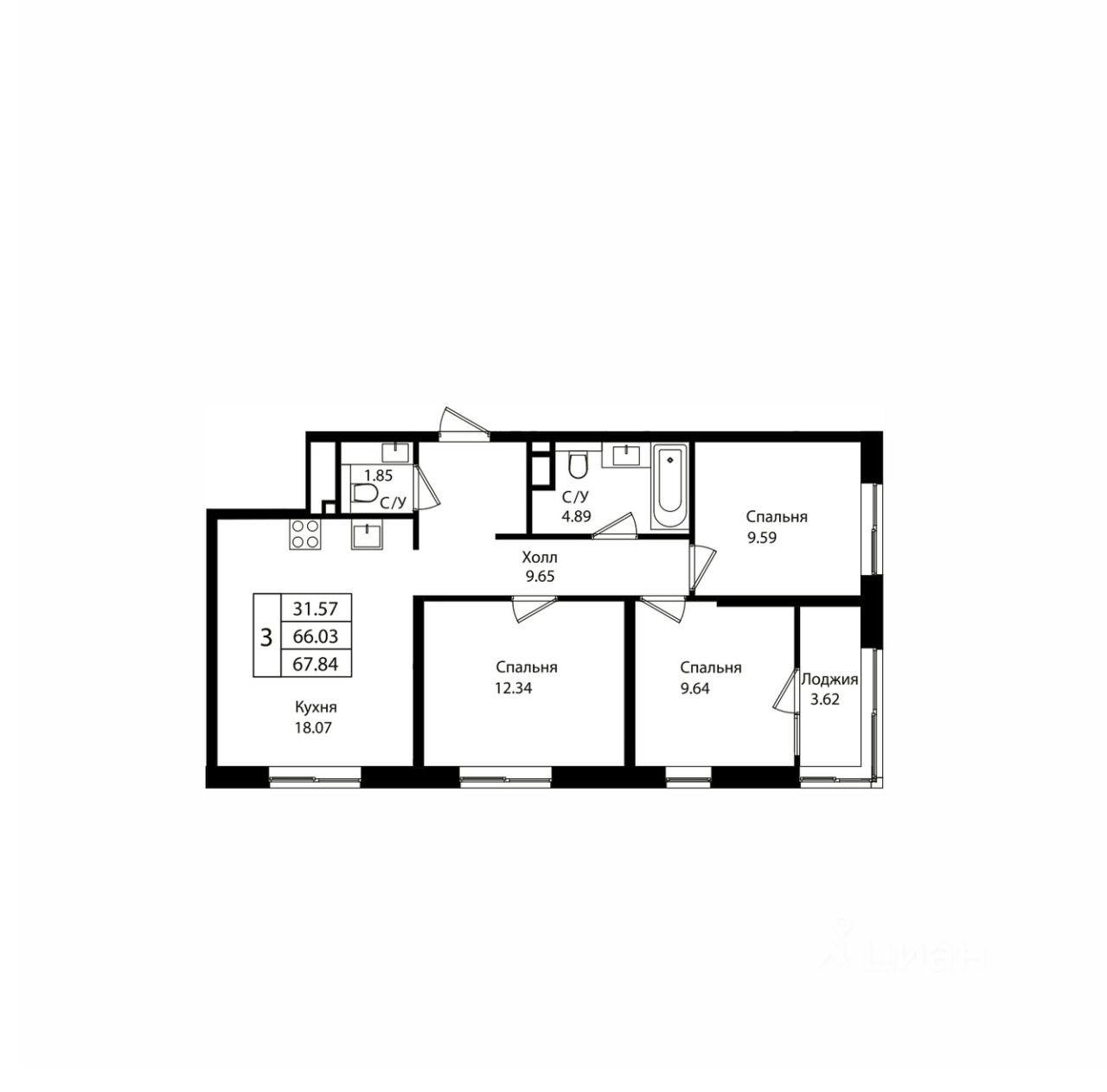 Общая площадь67,84 м2