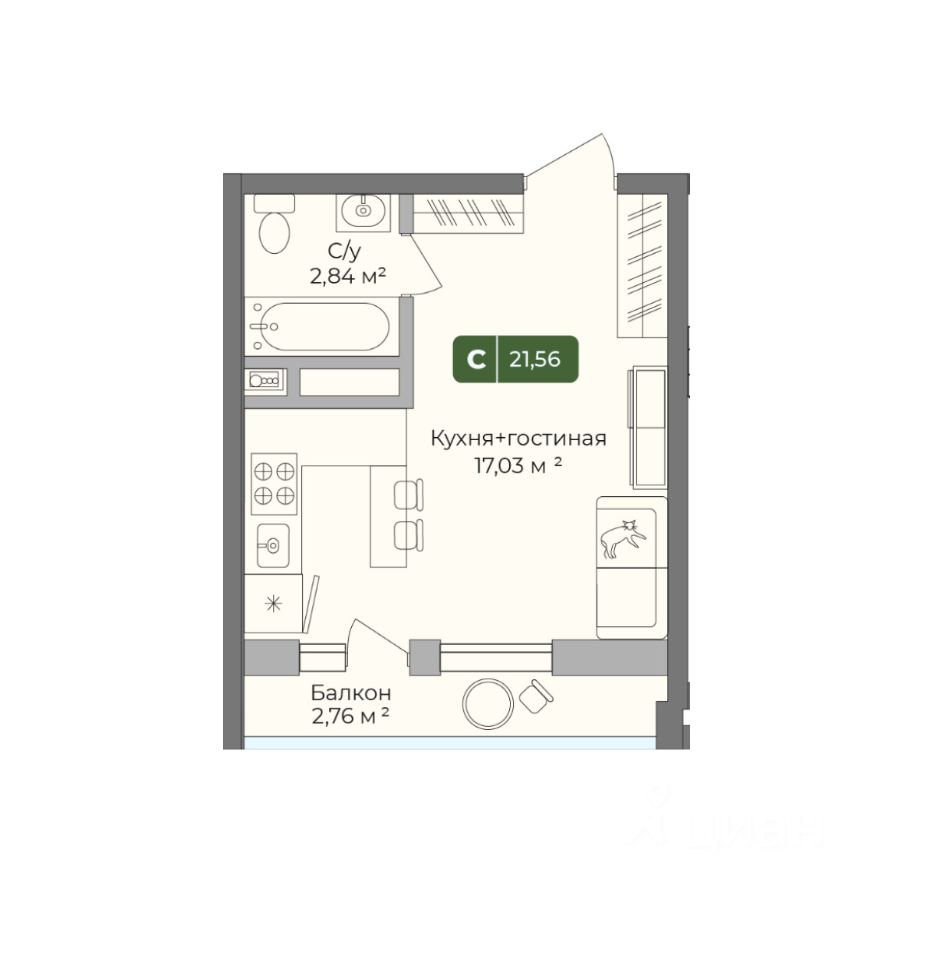 Общая площадь21,56 м2