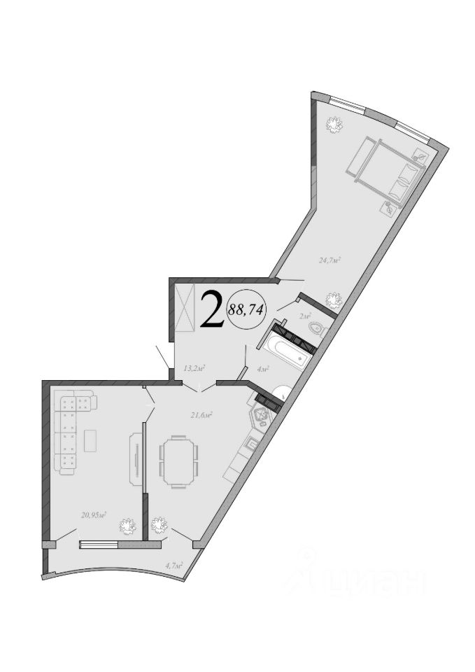 Общая площадь88,74 м2