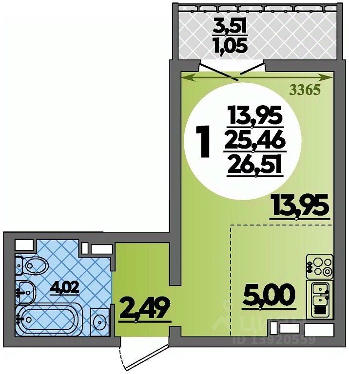Общая площадь26,51 м2