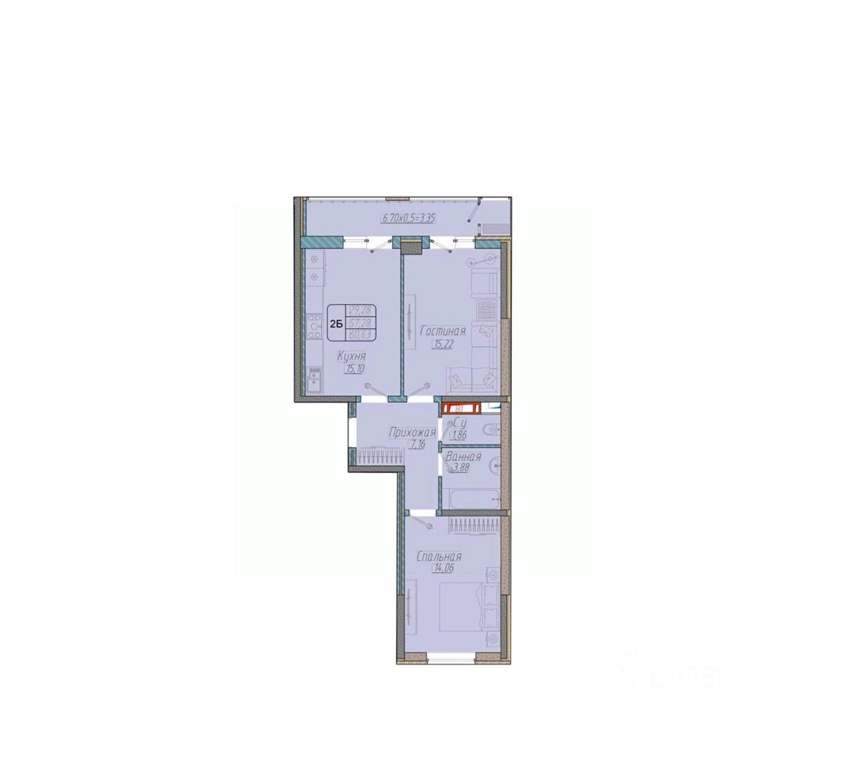 Общая площадь60,63 м2